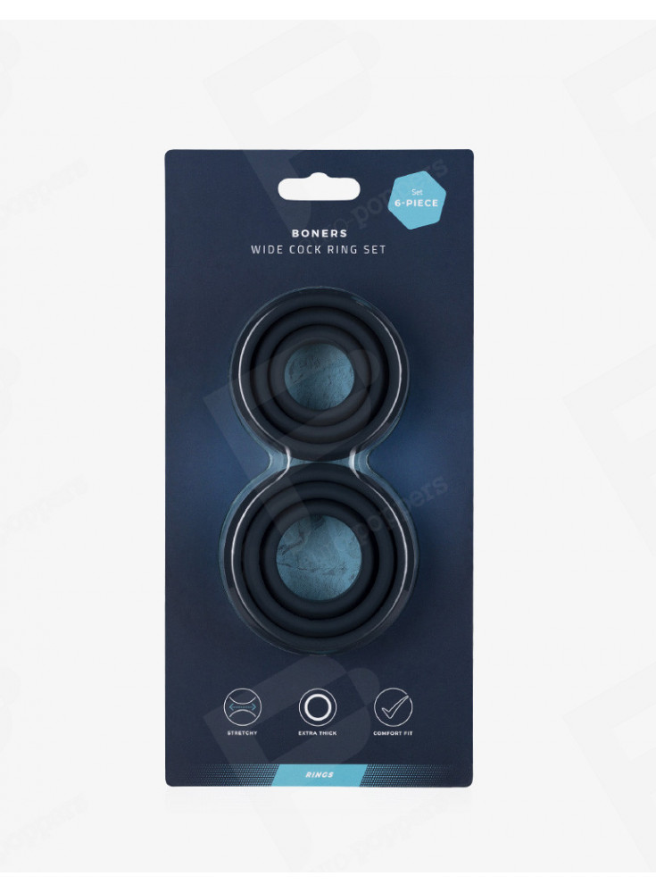 6er-Pack Silikon Penisringe Boners. Entdecken Sie ein praktisches Pack mit Sextoys, das Ihren Bedarf an Penisringen deckt: das 6er-Pack Silikon-Penisrings der Marke Boners. Kein Zögern mehr bei der Größe, denn dieses Pack bietet Ihnen eine ganze Reihe von Durchmessern. Jeder Penisring ist sorgfältig aus hochwertigem Silikon gefertigt, das sowohl Flexibilität als auch Haltbarkeit garantiert. Sie werden den Komfort und die Weichheit dieses Zubehörs zu schätzen wissen, das sich perfekt für eine längere Benutzung eignet. Achten Sie einfach darauf, sie nach jedem Gebrauch mit einem speziellen Sextoy-Reiniger zu reinigen, und Sie können Ihre intimen Momente in aller Ruhe genießen.